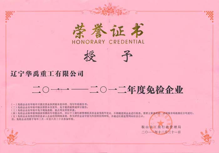免檢企業證書